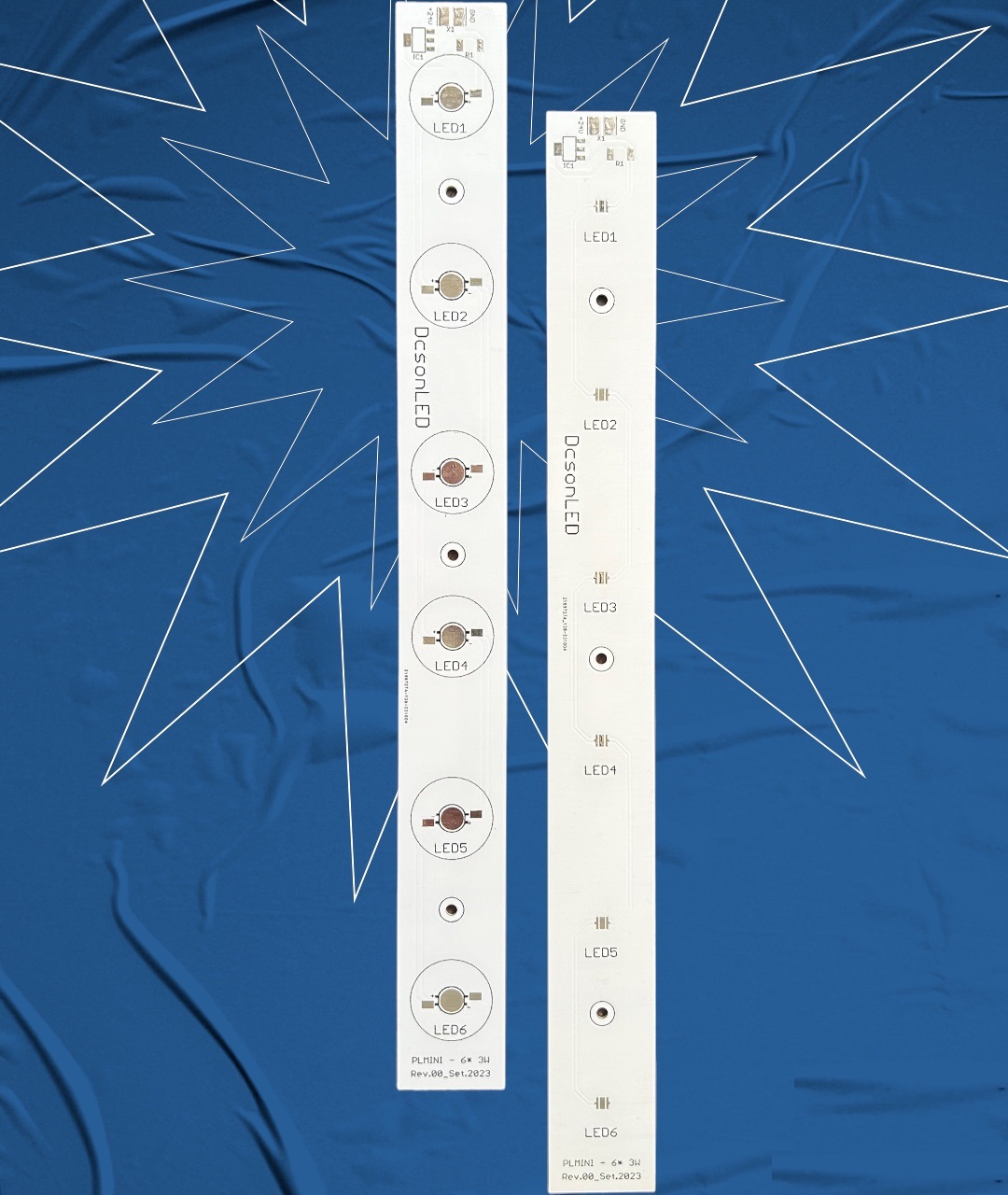 PLMINI foi desenvolvida para montagem de uma série contendo 06 leds de alta potência (3W ou 5W).